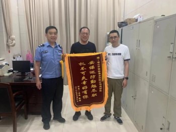 失主袁先生為表示對巡防隊員拾金不昧精神的感謝,他本人特地專程將一面繡有“安保巡防勤劬盡職 機不可失幸好有你”字樣的錦旗送到公司,以表謝意。