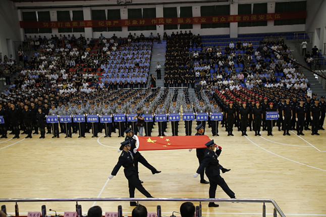 開幕儀式上,我公司4名保安員擔任入場儀式護旗手,他們英姿颯爽、整齊劃一,得到了在場領導和全體人員的一致好評。同時,我公司夏林軍同志擔任了保安員領宣人,周俊同志代表全體參賽選手宣誓,管輝同志代表全體裁判員宣誓。